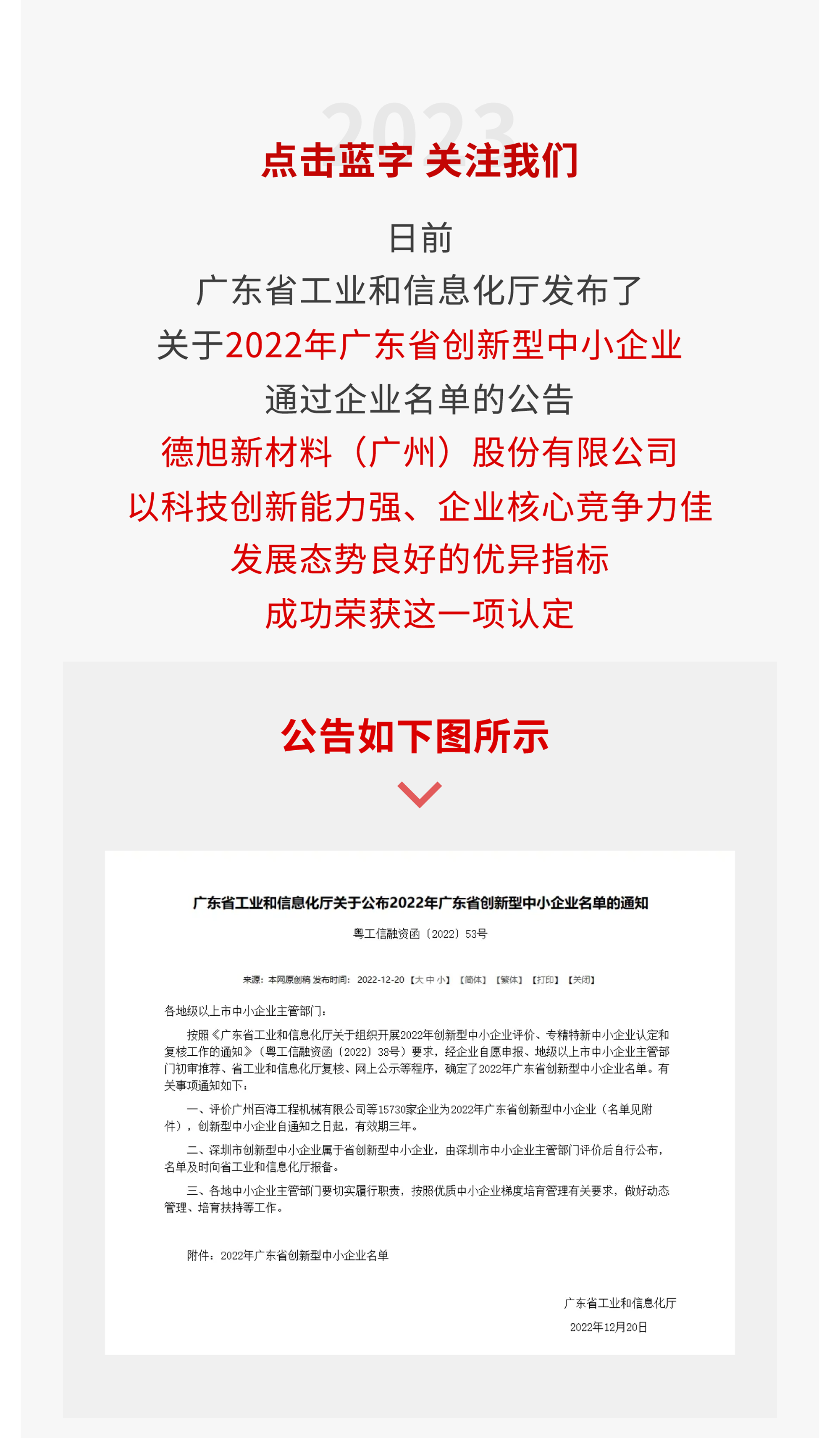 捷報丨強烈熱鬧慶祝我司榮獲“2022年廣東省立異型中小企業”稱呼!